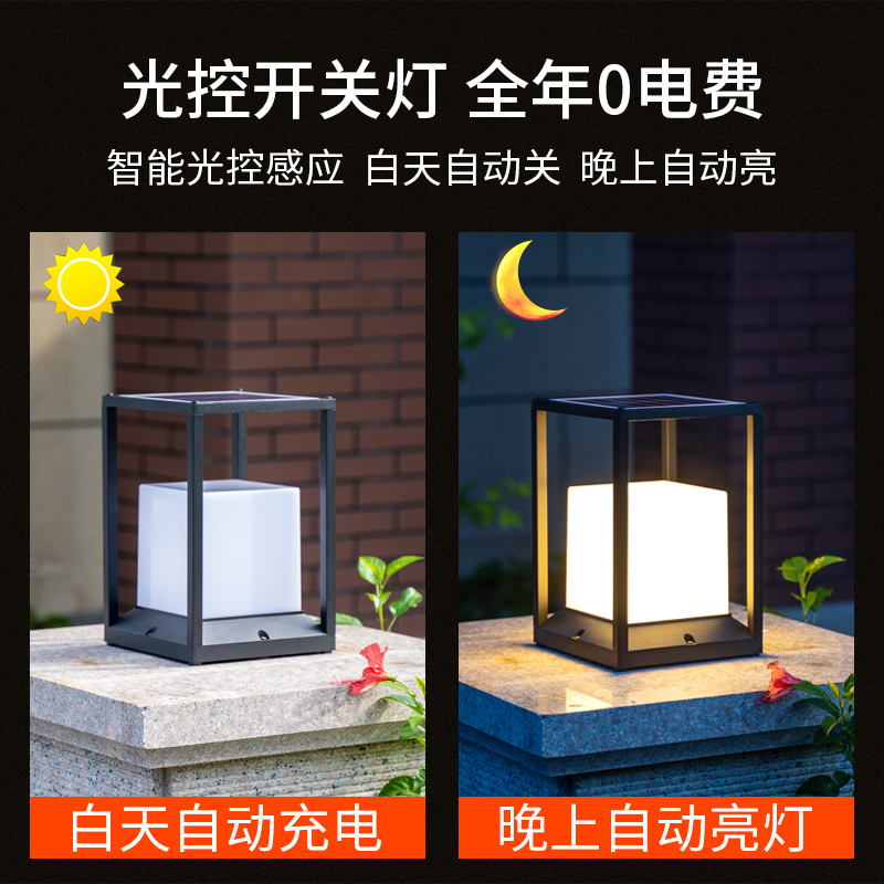 Solar outdoor lamp garden lamp post head lamp wall lamp gate pillar household street lamp waterproof villa door post lamp