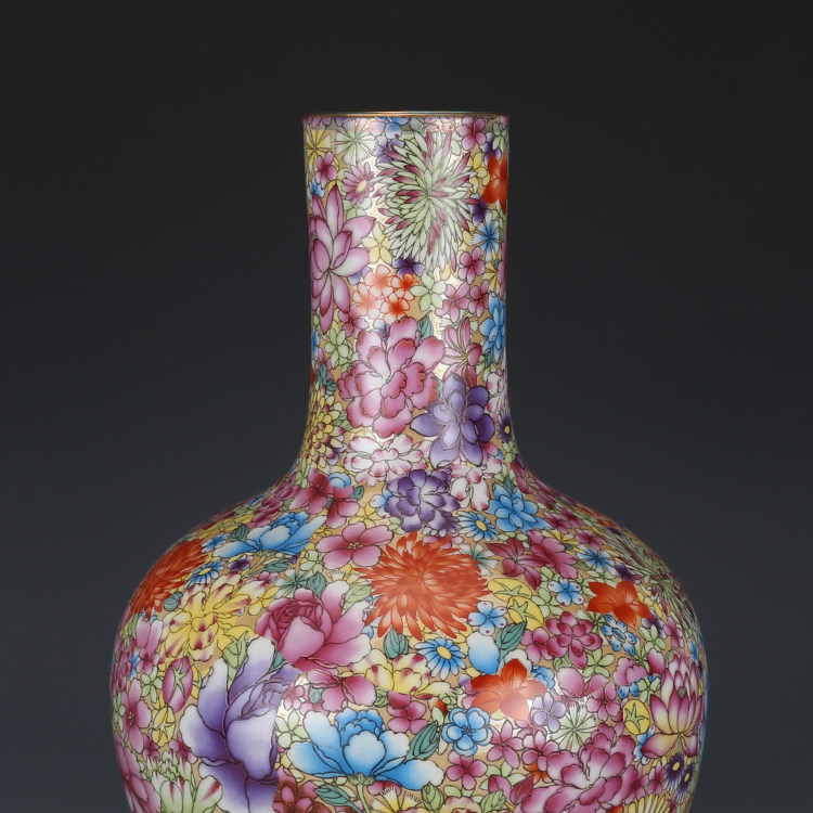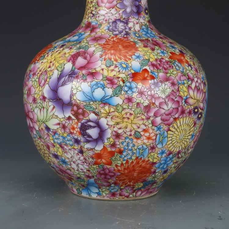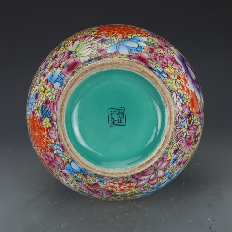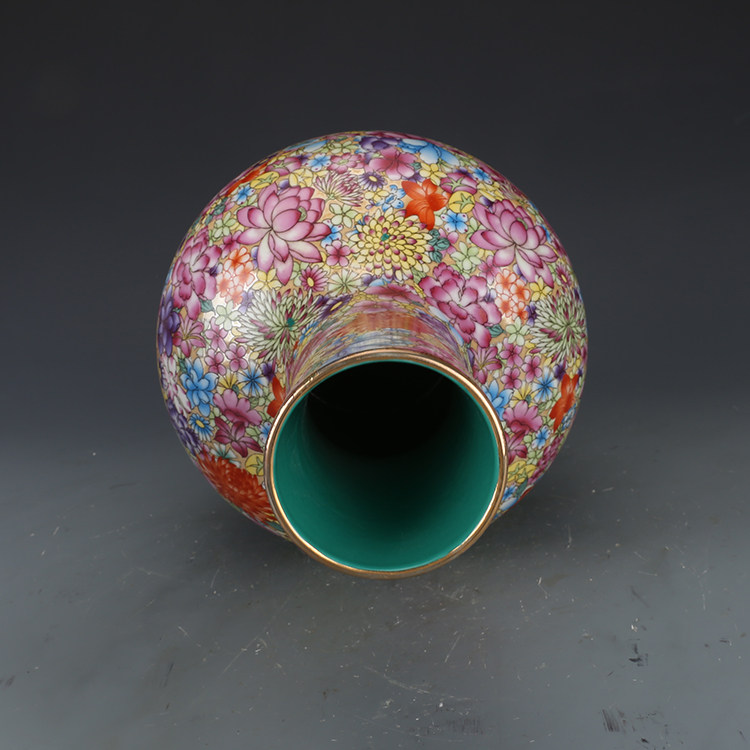 Qing Yongzheng imperial pastel golden earth ten thousand flowers celestial ball bottle antique antique collection authentic Jingdezhen antique porcelain