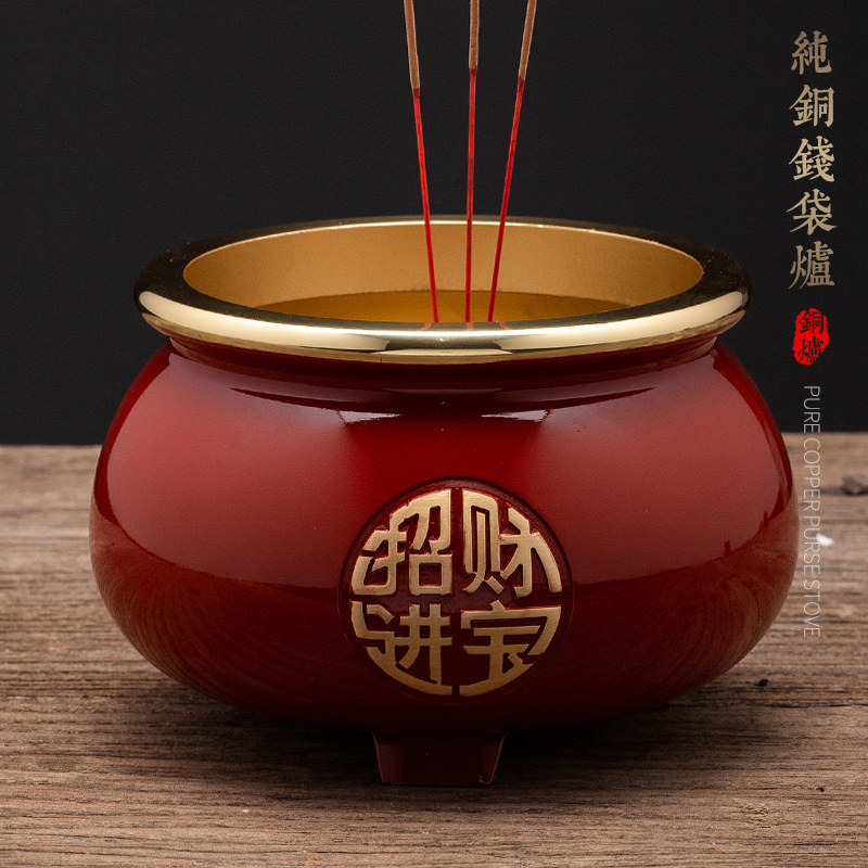 The pure copper incense burner room is dedicated to the god of wealth home Lotus flower insert sandalwood incense immortal home for Buddha burning incense copper stove ornaments