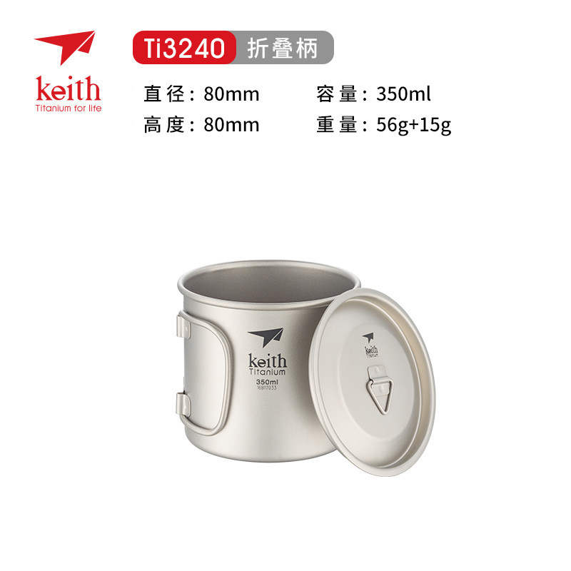 Keith Armor titanium cup Portable outdoor pure titanium cup Exquisite camping camping titanium cup Single layer cup 350ml