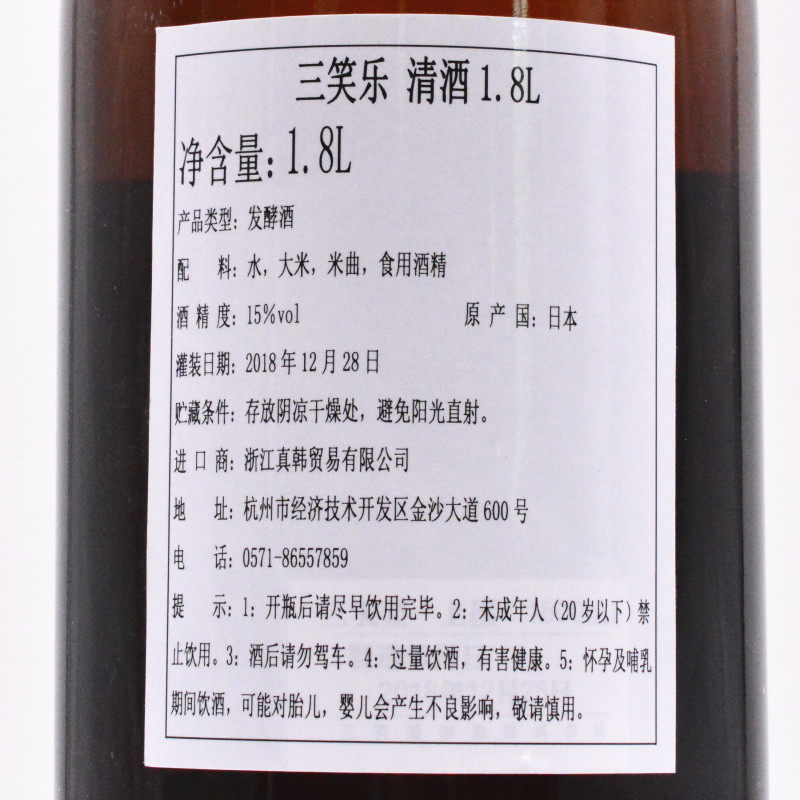 Originally imported from Japan, Sanxiaole selected sake 1 8L 15 degrees Japanese sake in some areas