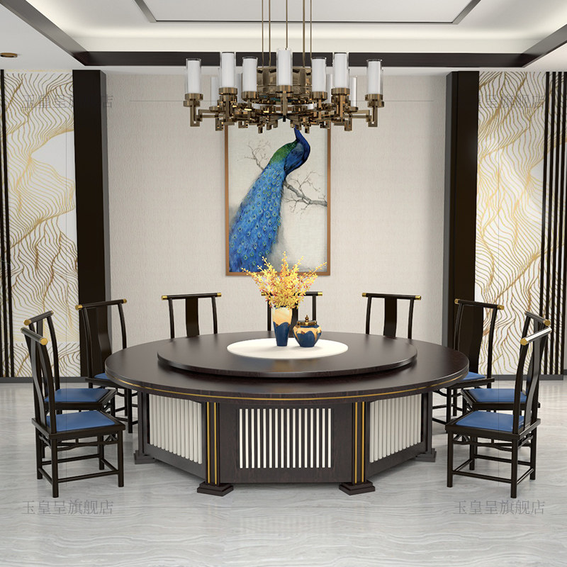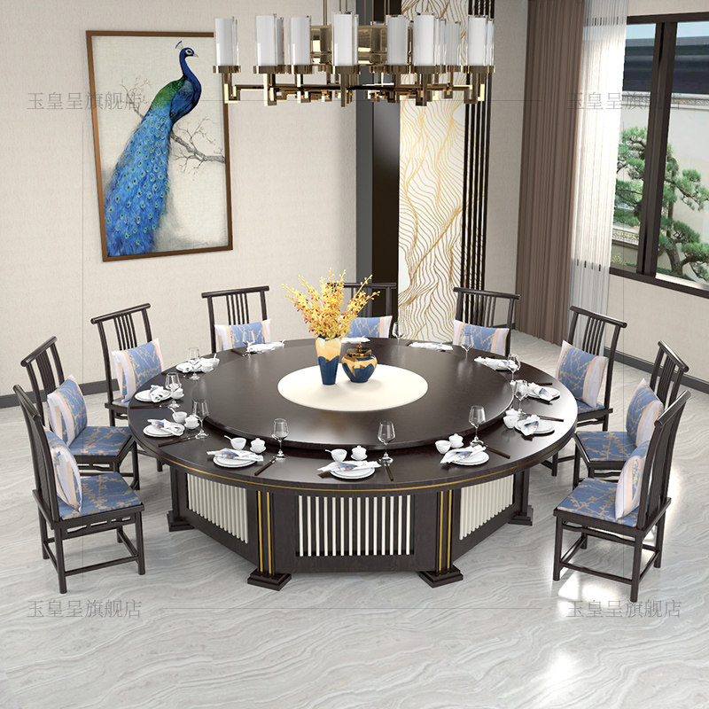 Yuhuangcheng new Chinese style hotel dining table, electric dining table, large round table, automatic 20-person hot pot table, restaurant combination table and chairs