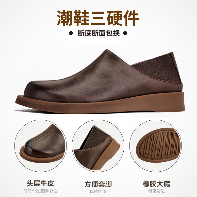 Waxed Leather Men's Shoes Genuine Leather Casual Business Shoes Retro Set Feet Big Leather Shoes Versatile Large Size Tooling Shoes Leather Shoes