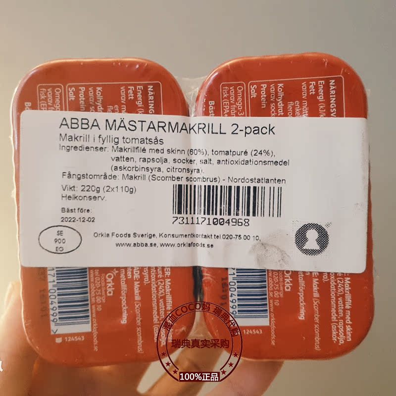 (Mixed coco mom) Sweden ABBA Abba canned mackerel in tomato juice green health certification