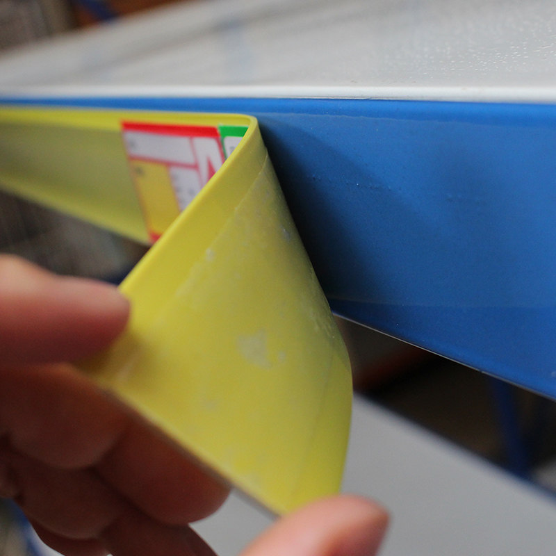 Shelf adhesive transparent card bars on the shelves