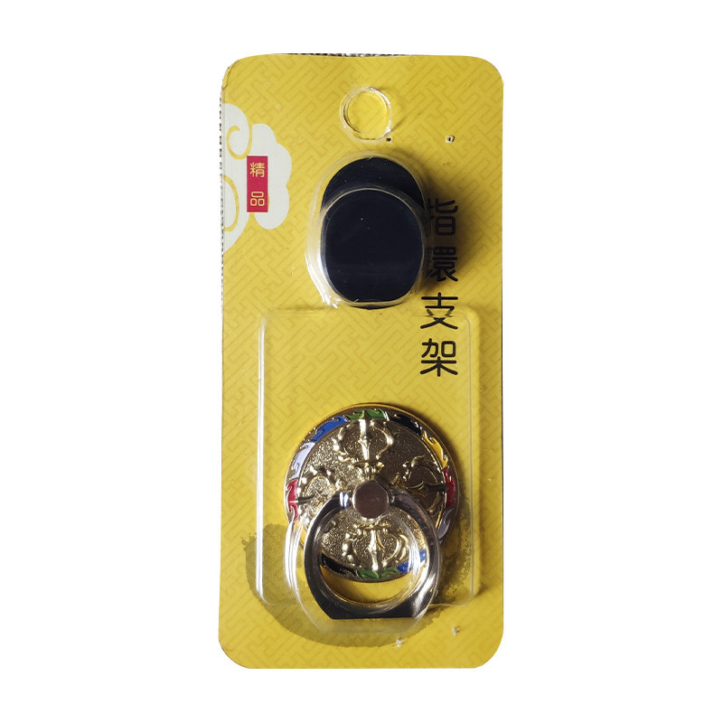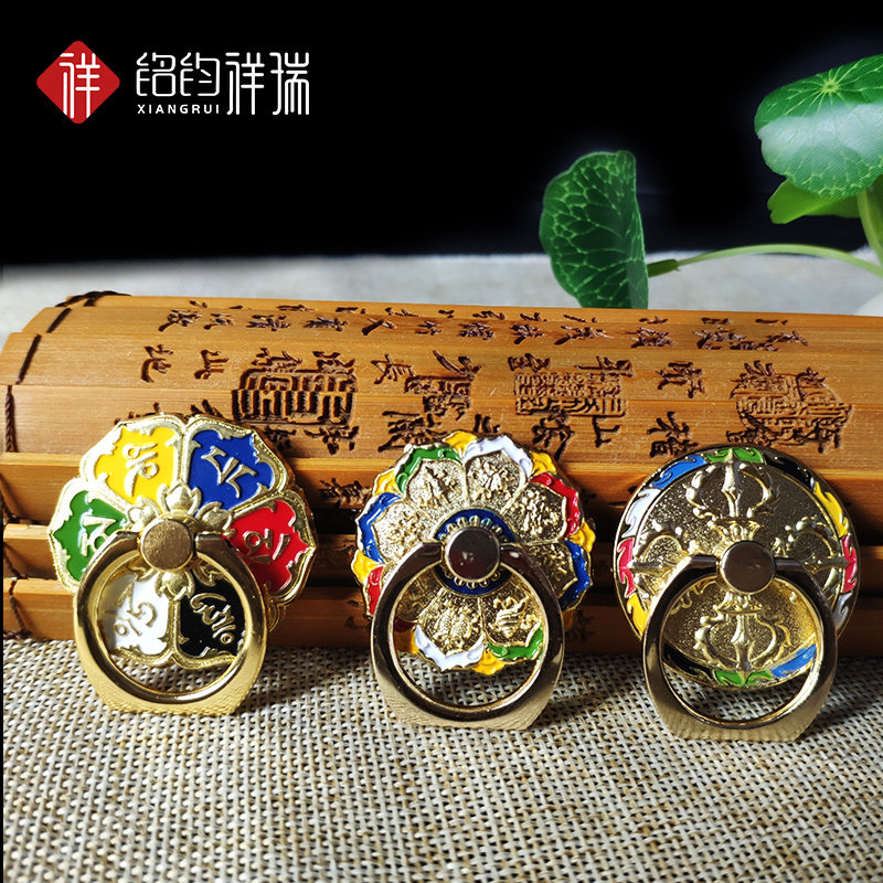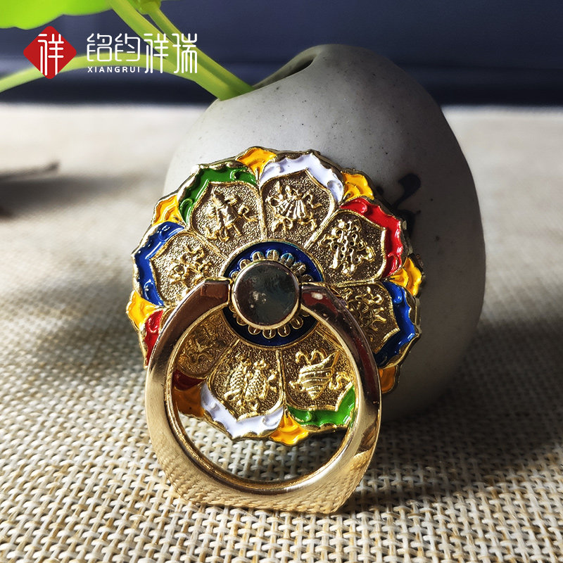 Factory price tie-edge painted eighth auspicious eight-treasure alloy mobile phone frame ten phase at ease with mobile phone ring buckle desktop car