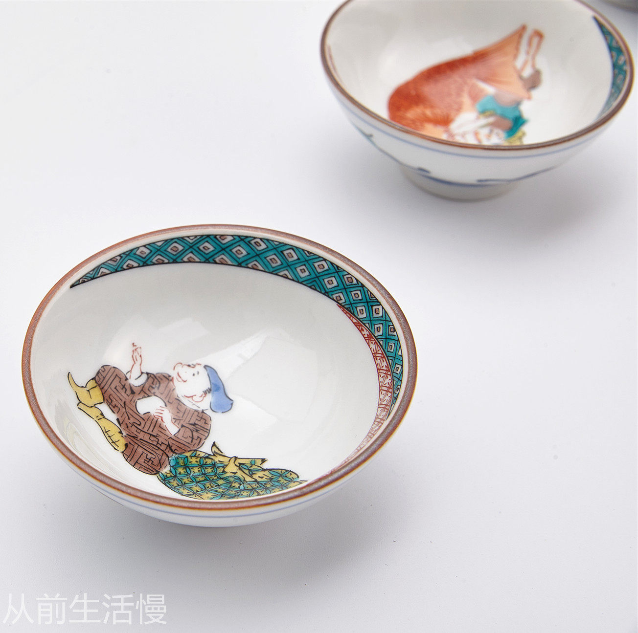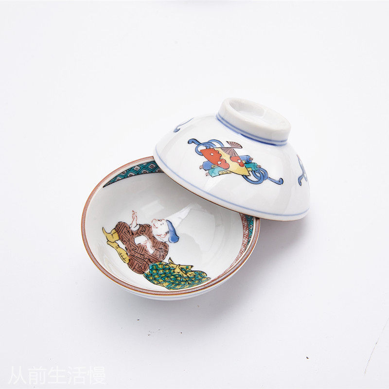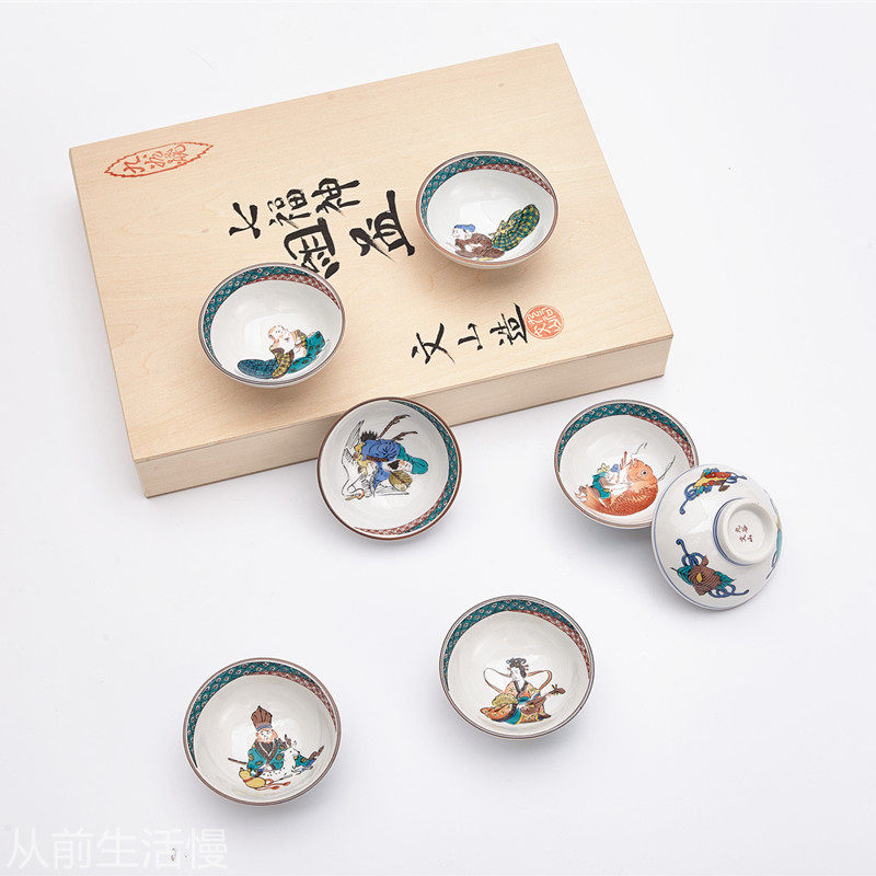 Japan imported Kutani burning seven gods of good fortune hand-painted ceramic tea cups for elders Japanese kung fu tea set gift box set