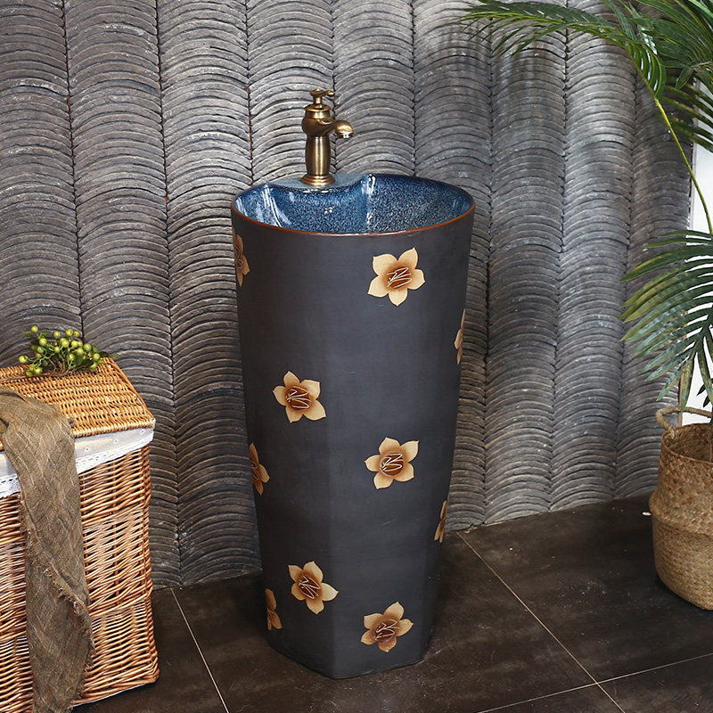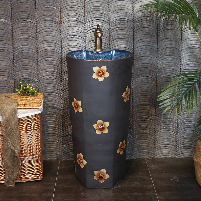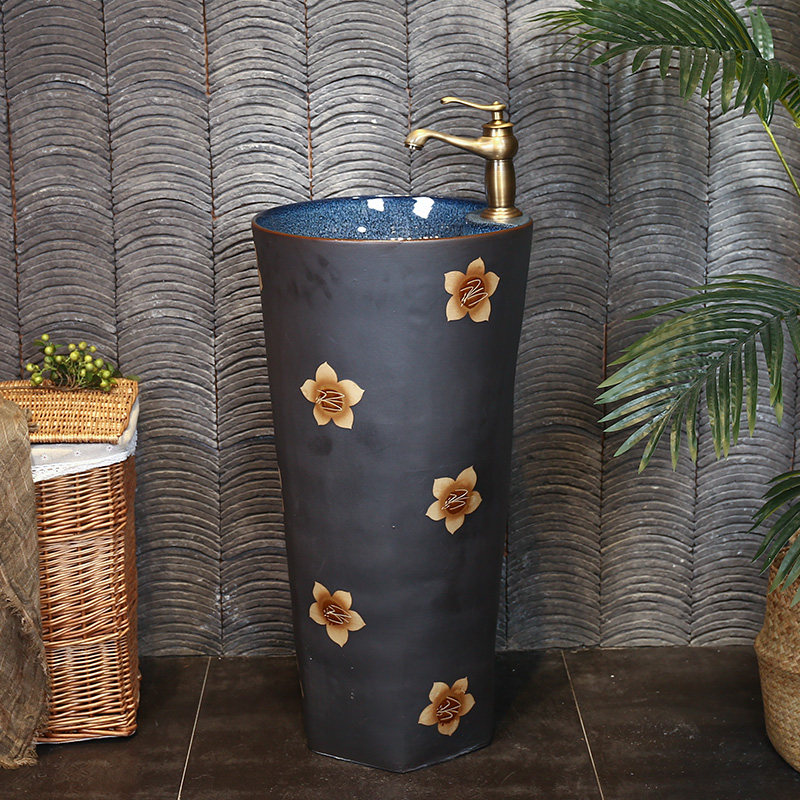 Washbasin Floor-standing Retro Art Column Basin Ceramic Column Washbasin Integrated Basin Vertical Washbasin