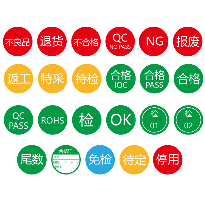 Round QC qualified label sticker special NG scrapped inspection-free mantissa rework defective product return pending inspection sticker QCPASS label handwritten can be pasted small size small dot sticker can be customized