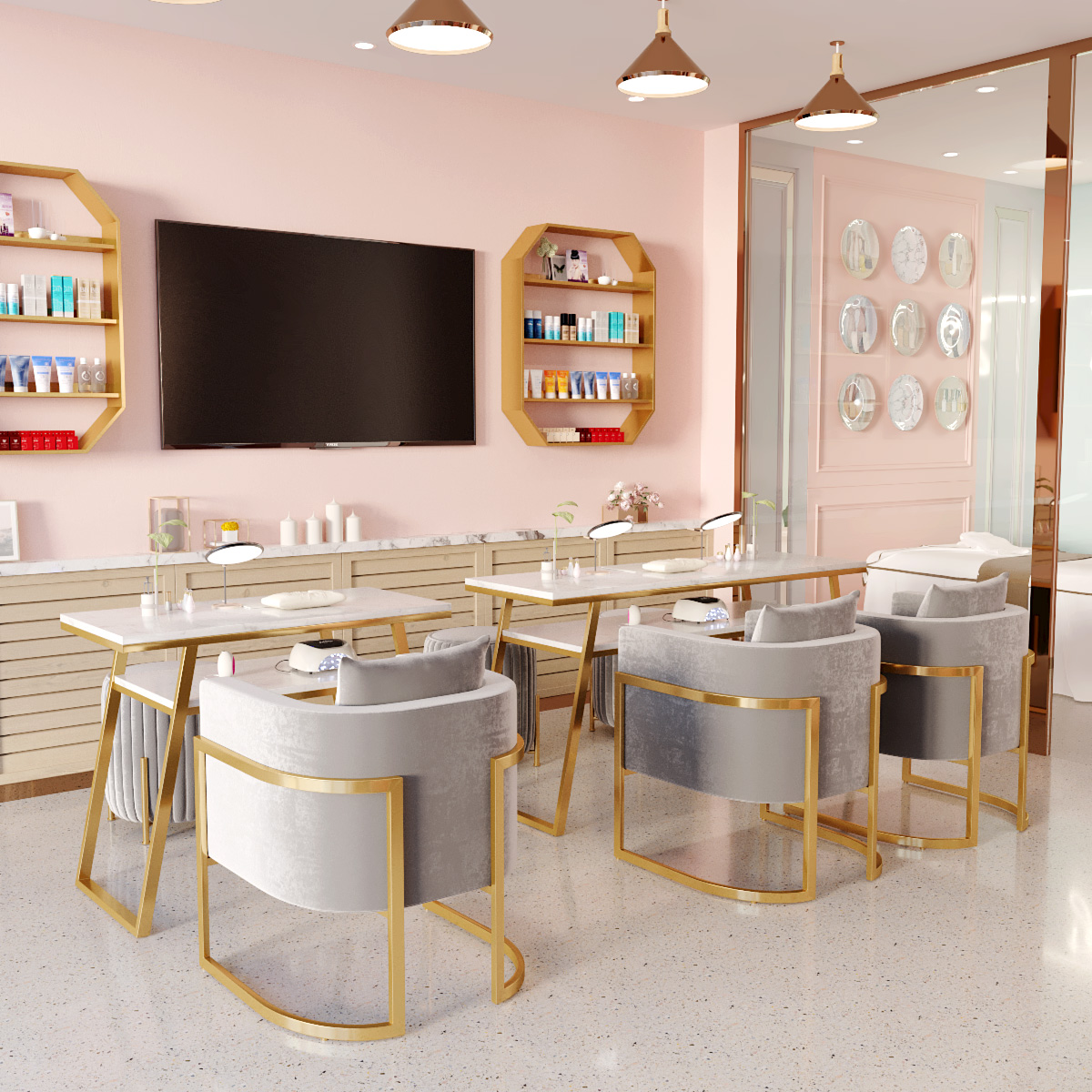 Net red medecor table and chairs suit minimalist modern marble bilayer ins beauty shop table single double mealto table