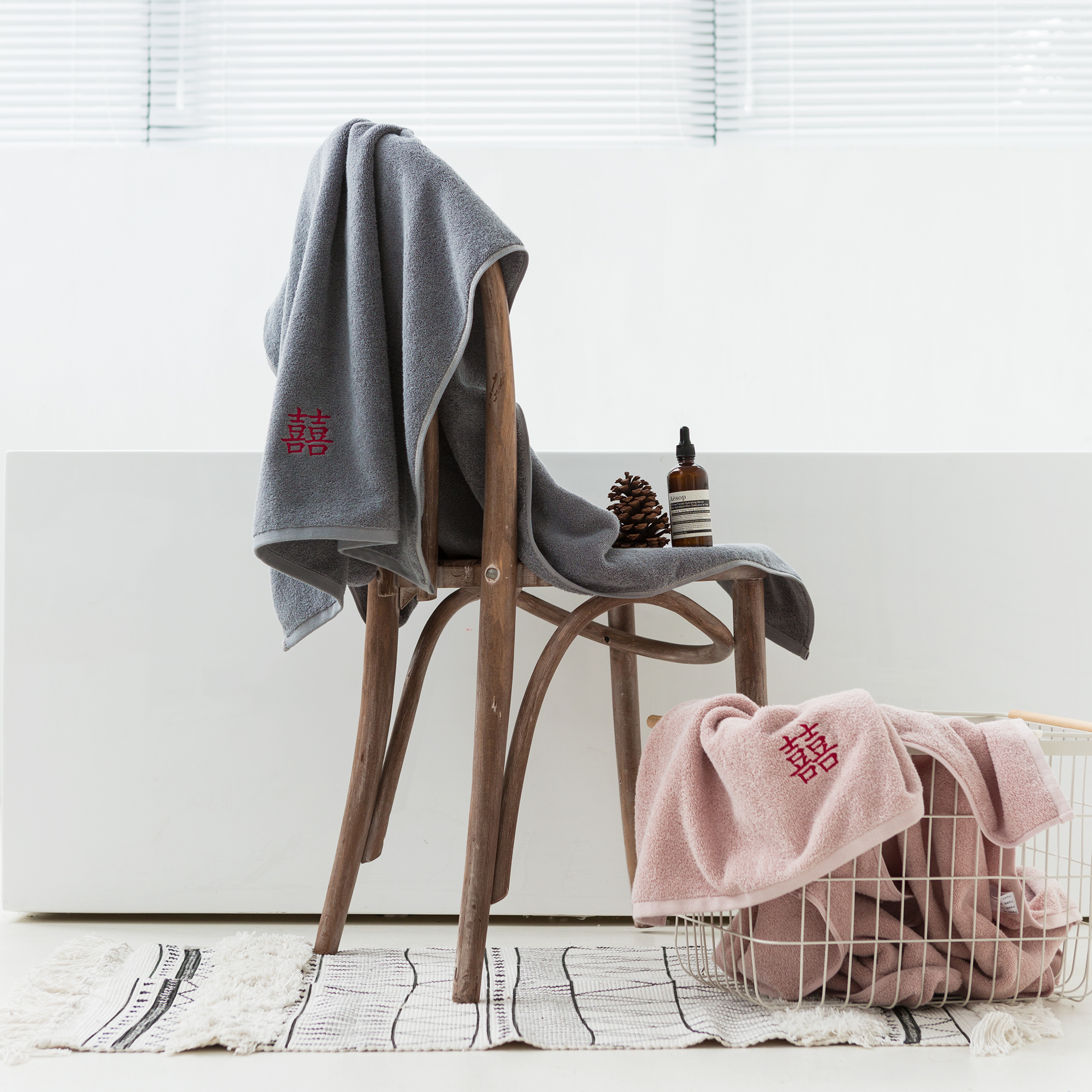 Pink tub towel gray toilet towel new product - red tub
