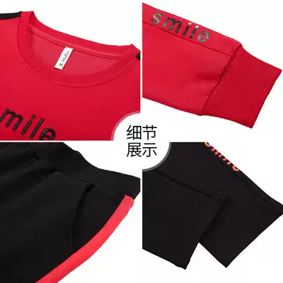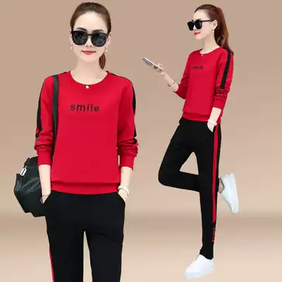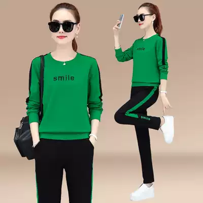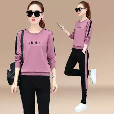 Sports Set Women Spring and Autumn 2019 New Fashion Korean Edition Large Size Round Neck Pants Casual Running Clothes Two Piece Tide