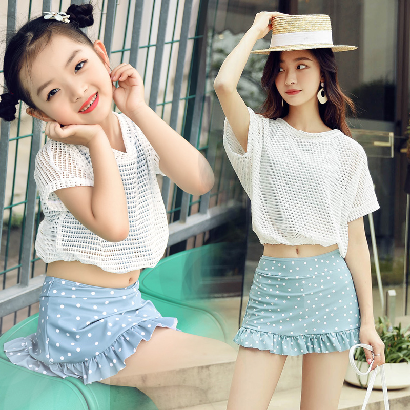 Parenting Swimsuit Mother Woman New CUHK Child Two Style Skirt Bikini Three-piece Spa Swimsuit Girl