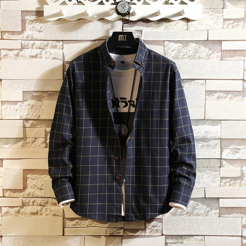 Shirt men's long-sleeved Korean version handsome trend plaid shirt summer men's handsome thin coat new loose shirt