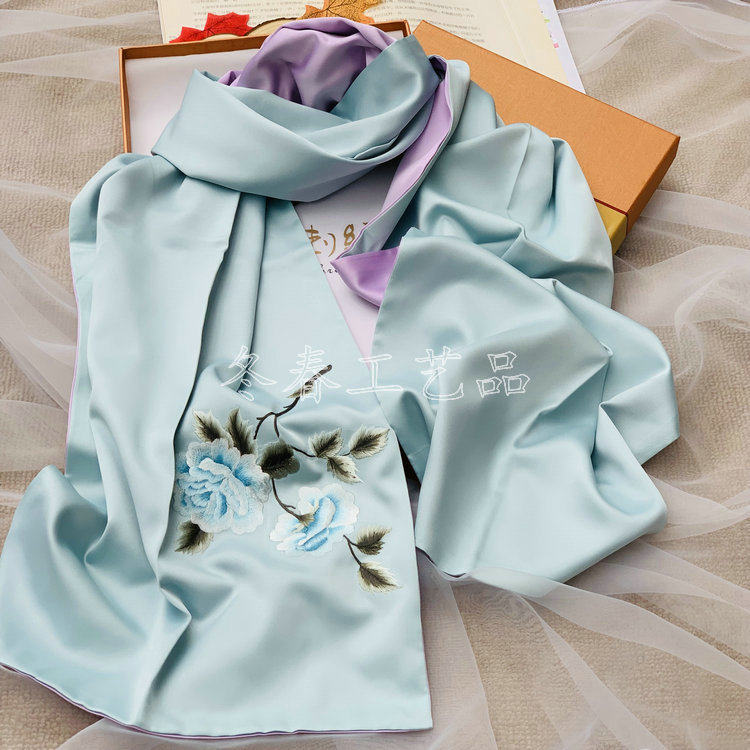 Deficit promotion Suzhou embroidery Su embroidered silk scarves with a raised eyebrows and raised eyebrows abroad gift long female silk towels Suzhou special product