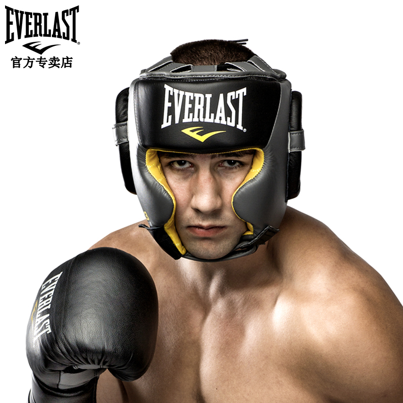 EVERLAST full protection fighting free fighting sanda protective gear training equipment leather boxing helmet head protection