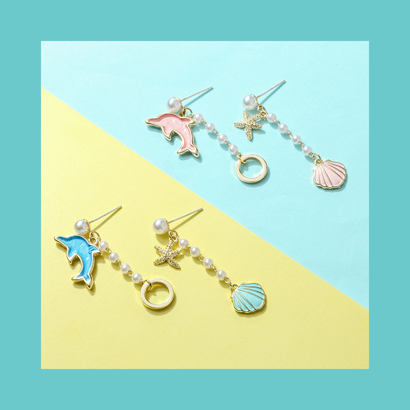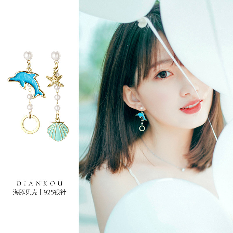Blue Dolphin S925 Silver Pin Powder Dolphin U Type Ear Clip Blue Dolphin U Type Ear Clip Pink Dolphin S925 Silver Pin