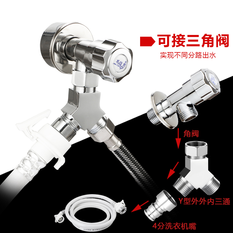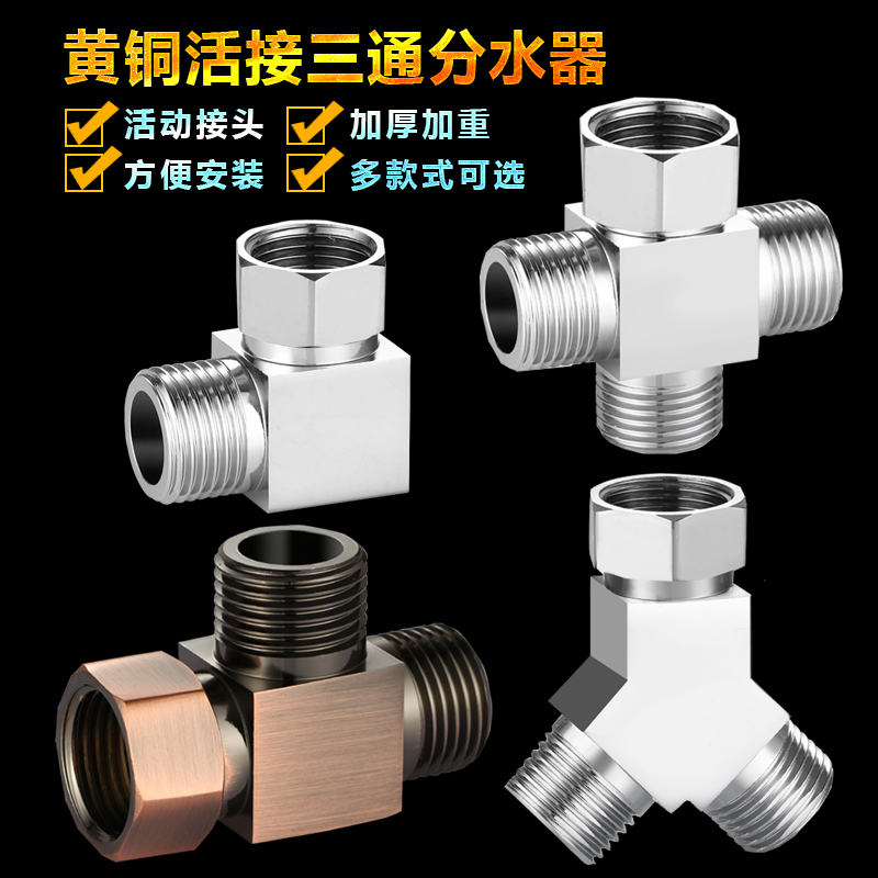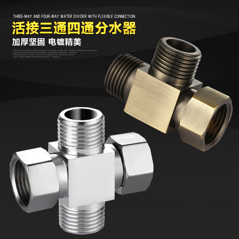 Thickened full brass band Living with three-way angle valve for one-in-two out of four out-of-teeth turning connector Water-splitting valve water distributor joint-Taobao