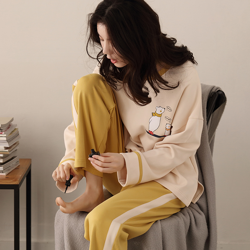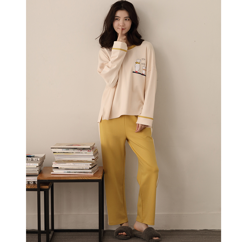 Sleepwear lady Spring and autumn with long sleeves pure cotton loose large size for outside wearing home clothes woman autumn and winter full cotton cover group