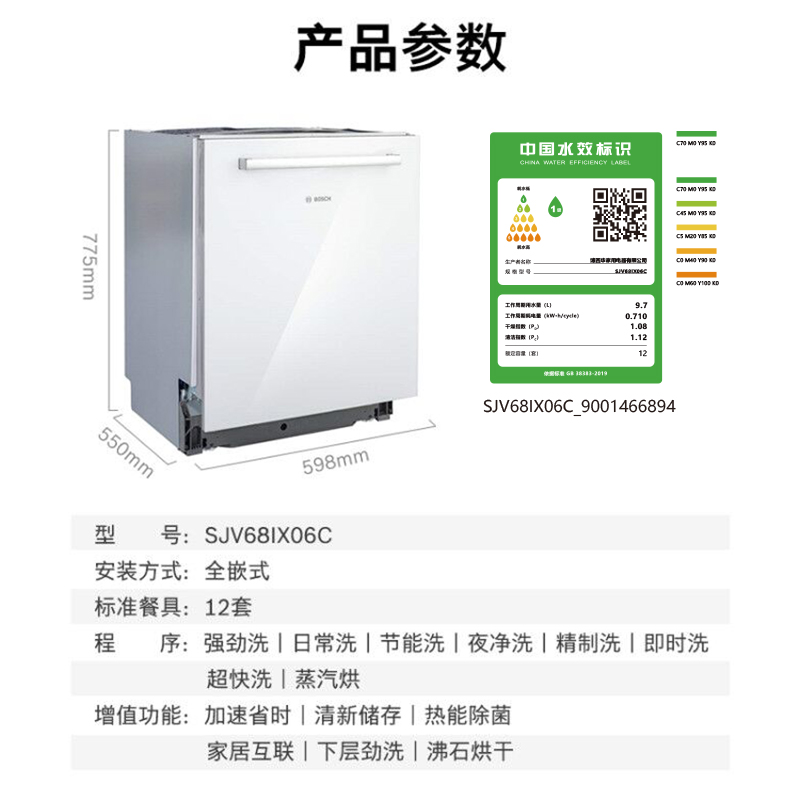 Bosch household dishwasher Built-in sterilization zeolite drying large capacity 12 sets SJV68IX06C