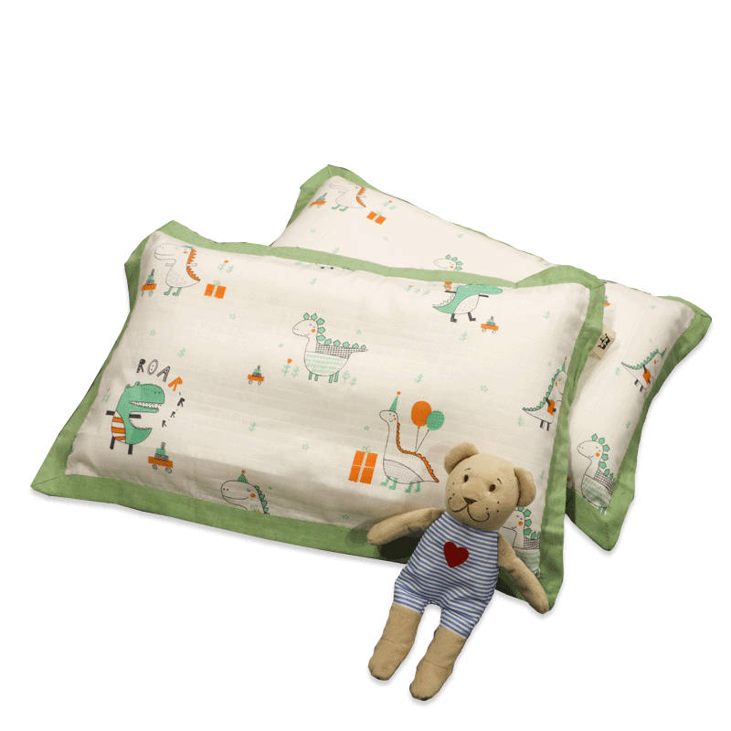 Soft and breathable class A non-fluorescent gauze pillowcase one-piece green little dinosaur kindergarten 40x60 cotton pillowcase