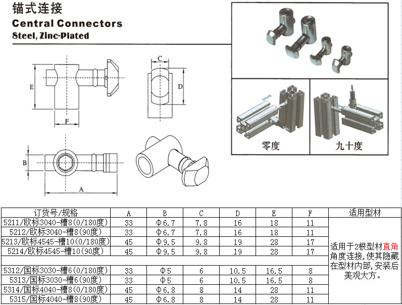 European standard 30 40 45 type anchor connector industrial aluminum extrusion material slot 8 hammer connector 90 degrees 180 degrees