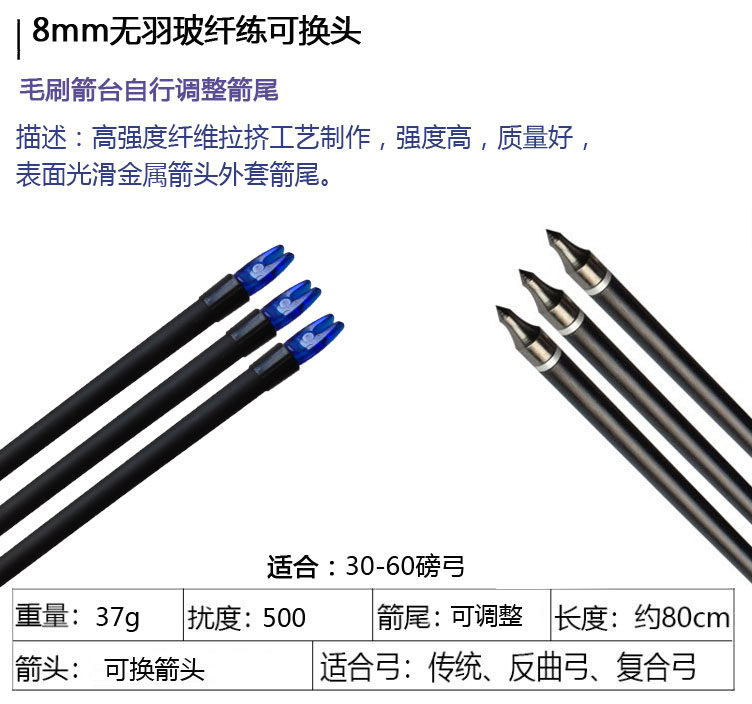 2019 New featless arrow 6mm No Hwing Arrow 8mm No Hwing Arrow Exchangeable Head Archery Field Outdoor Arrow