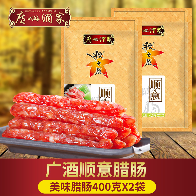 Guangzhou Wine Family Cisterosaurus 400g * 2 Air Dry Savory Wine Sausage Guangdong Rameat Wide Sausage Sausage sausage