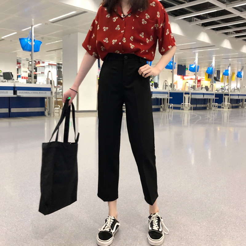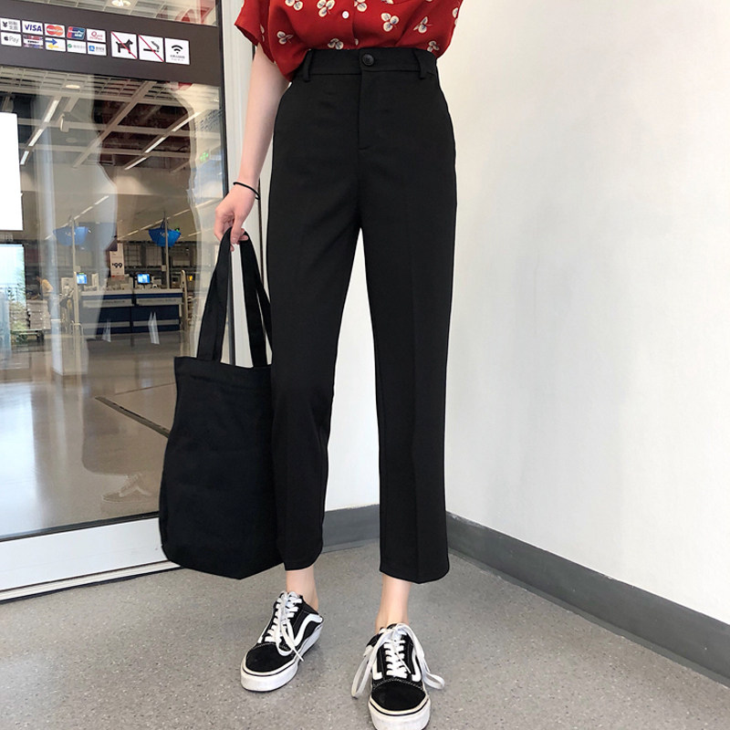Spring and autumn 2021 new thin nine-point pants black casual small trousers high-waisted suit pants women's straight loose pants