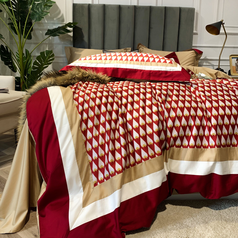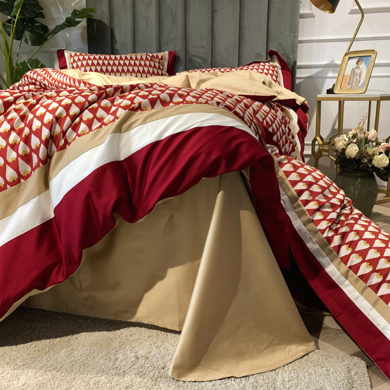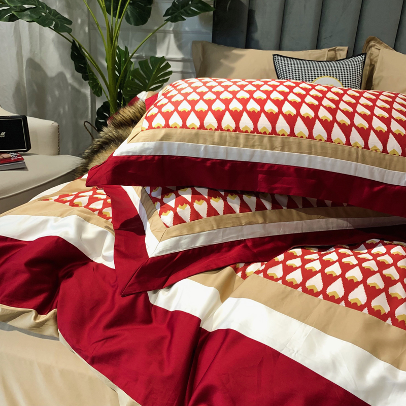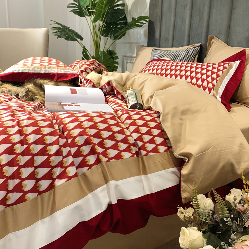 60 modern cotton four - piece light luxury flavor coloured prints were set for cotton beds