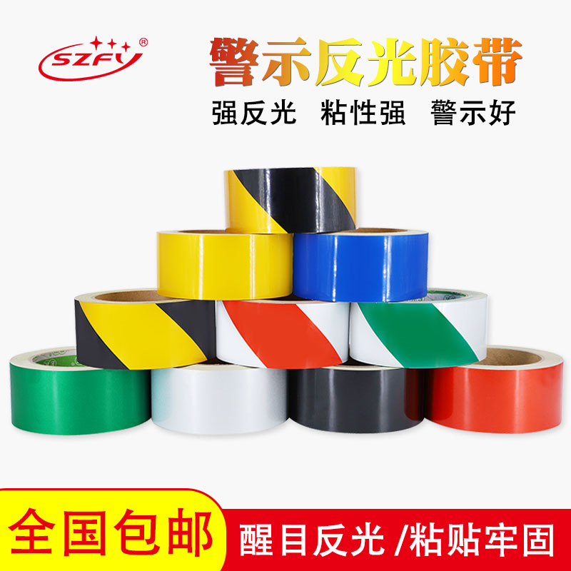 Reflective warning adhesive tape sticker black yellow reflective strip night light shine with body sticker security guard with reflective film black yellow red and white yellow blue green black warehouse partition line