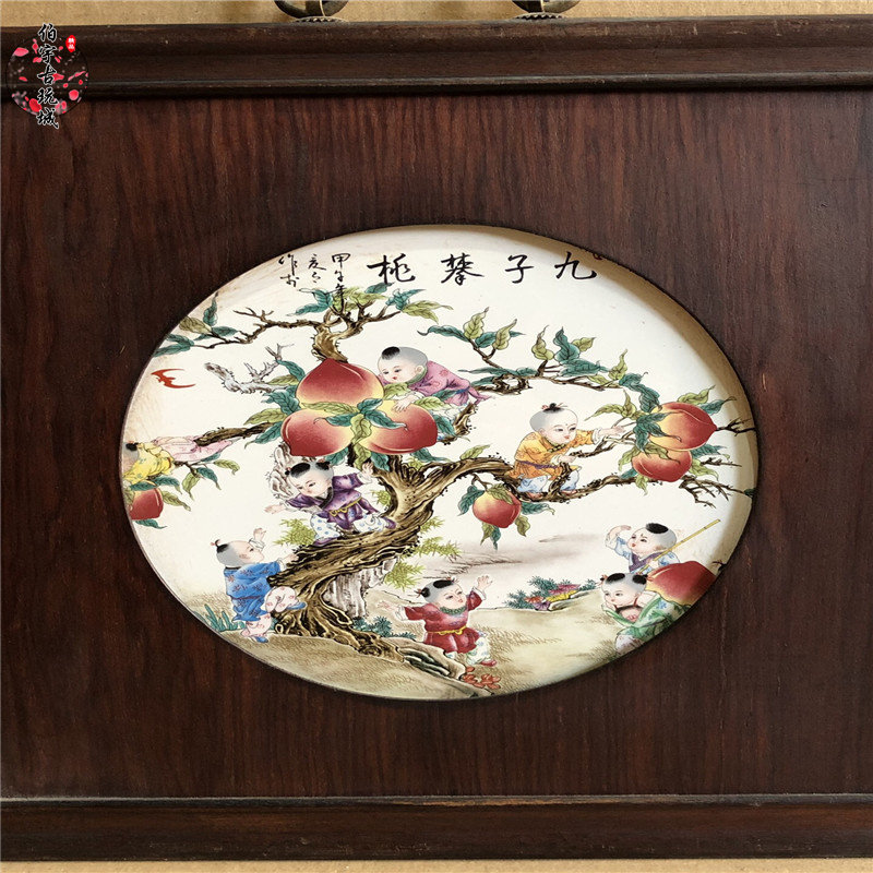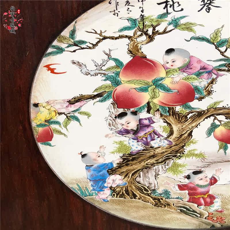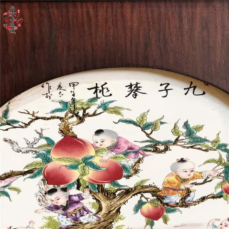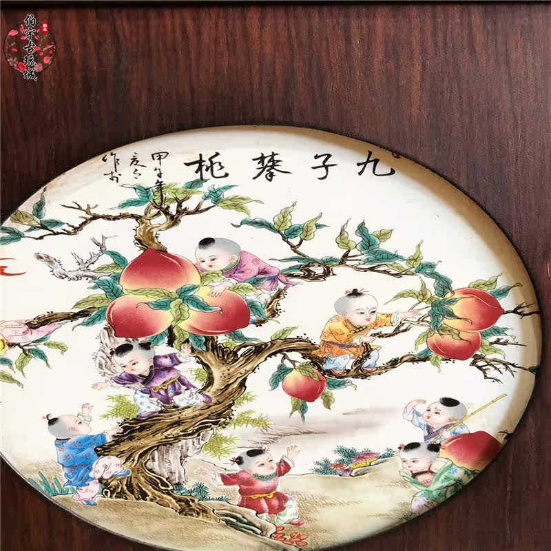 Jingdezhen pastel porcelain plate painting famous hand-painted classical housewarming living room ceramic painting hanging mural decoration nine sons Pan Tao