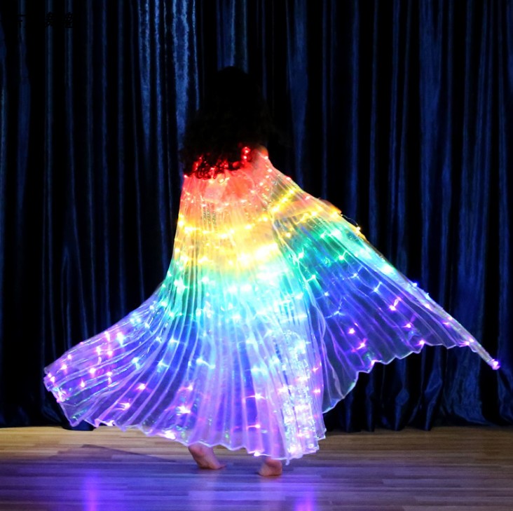 Children Rainbow LED luminous wings Performance Luminous Props Fluorescent Butterfly Belly dance Shine Gold Wings Cape-Taobao
