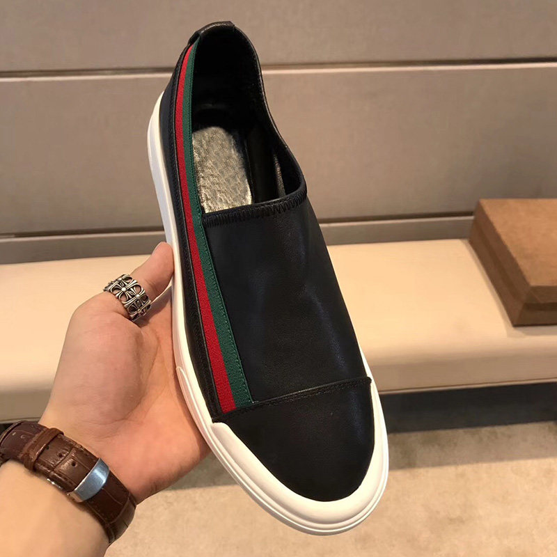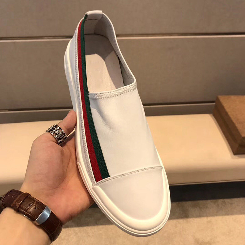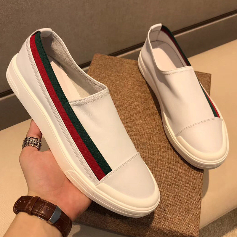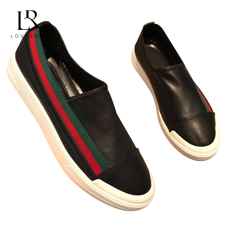 European Station Green Red Stripes New men's shoes One foot pedal sloth shoes genuine leather 100 hitchhiking casual flat-bottomed Lefoe shoes men