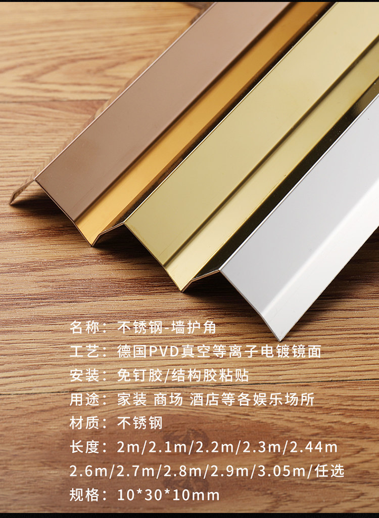 L-shaped stainless steel right angle line black titanium alloy anti-collision guard rose gold guard corner line metal closing line 7-character closing edge