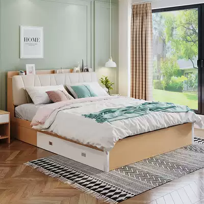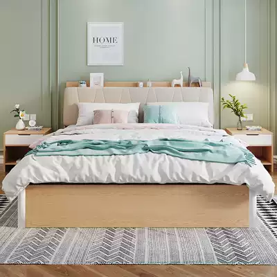 Nordic style storage bed Modern simple double bed Master bedroom small apartment with drawer type air pressure high box can store bed