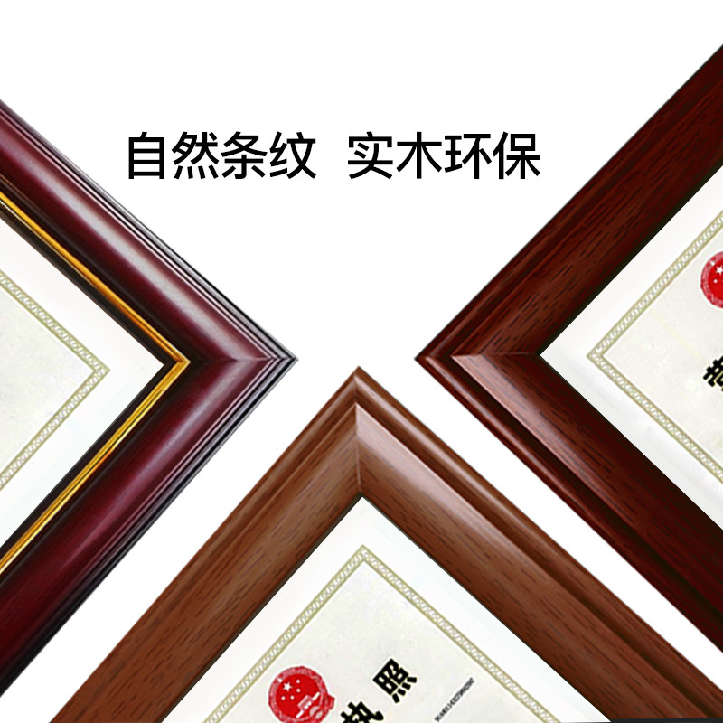 Business license frame Solid wood wall-mounted frame Three-in-one health license frame Mirror frame frame Photo frame basket