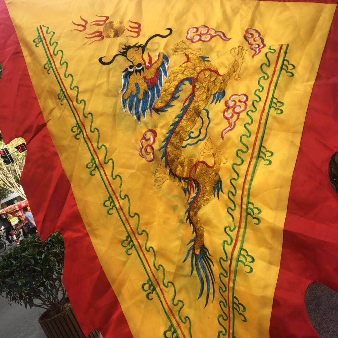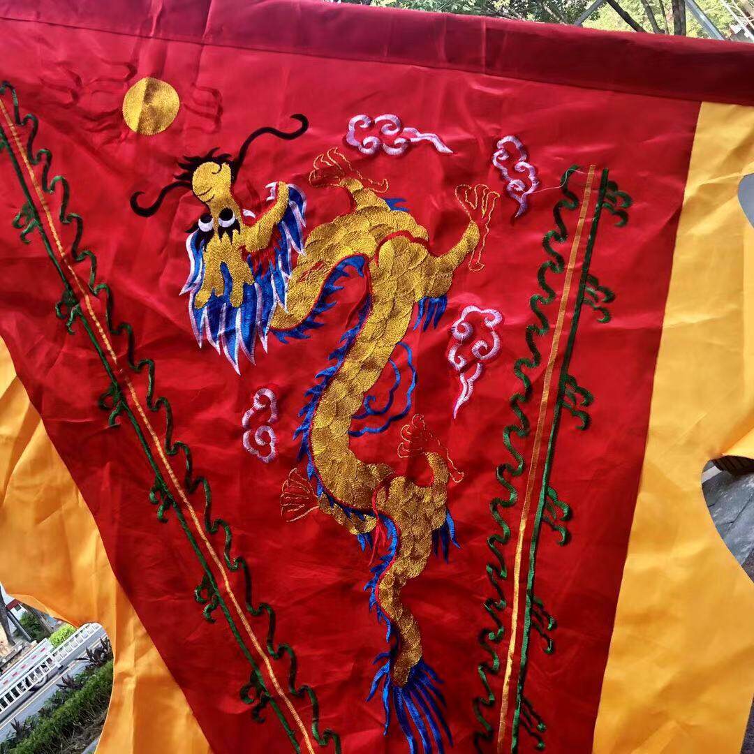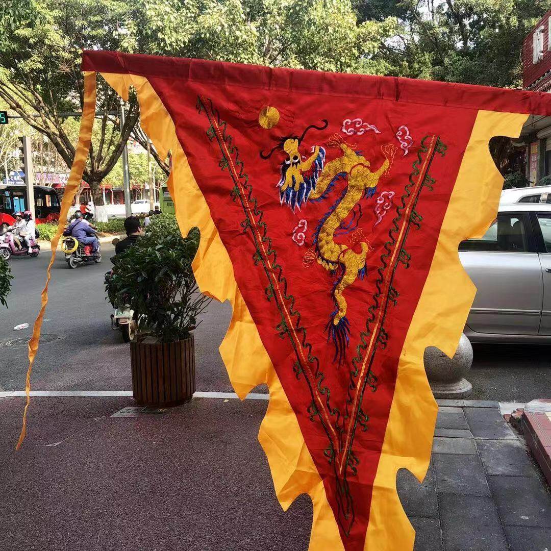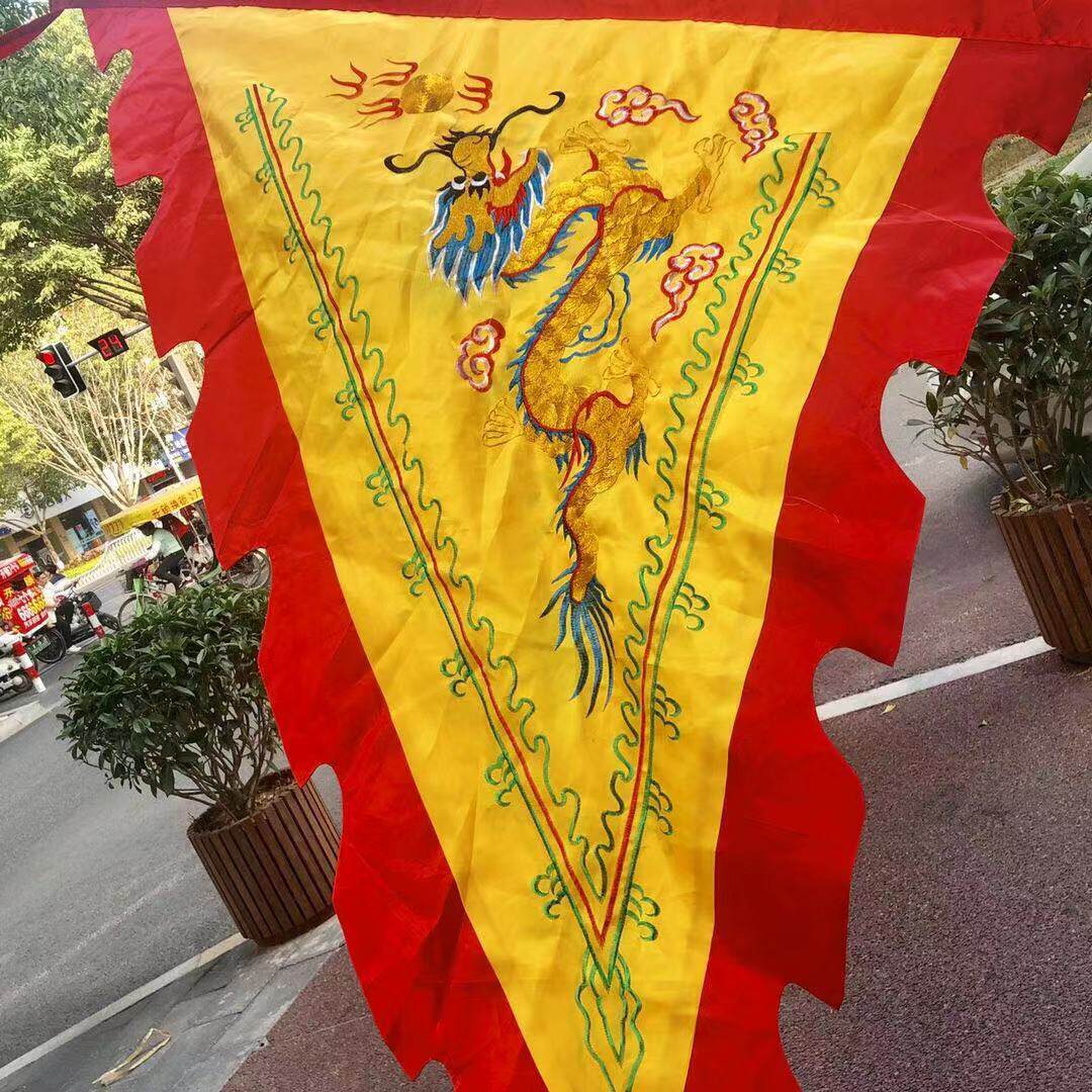 Dragon flag triangular dragon flag ancient costume flag double-sided gold embroidered dragon pattern various specifications custom 1 8 meters