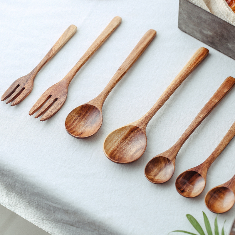 Day Style Teak Spoon Fork Seven Pieces Small Wooden Spoon Suit Children Eat Spoon Sweet Spoonful Spoon Long Handle Stirring Spoon