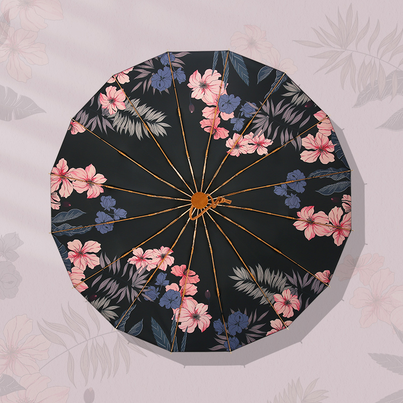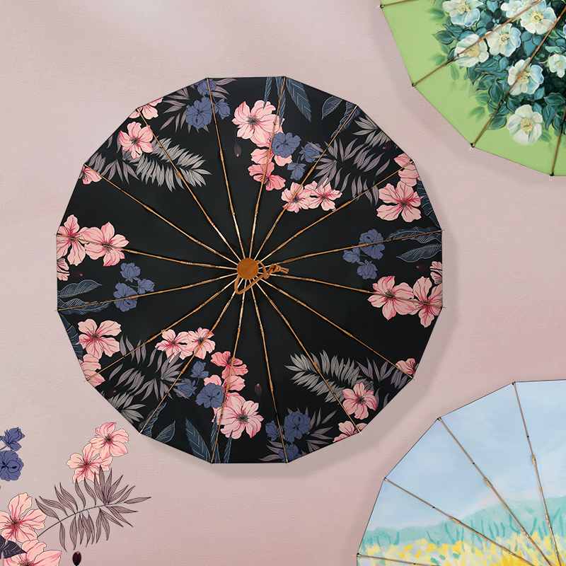 Sun umbrella umbrella female summer 16 bone folding vinyl super strong sunscreen umbrella anti-ultra ultraviolet retro rain and shine dual use