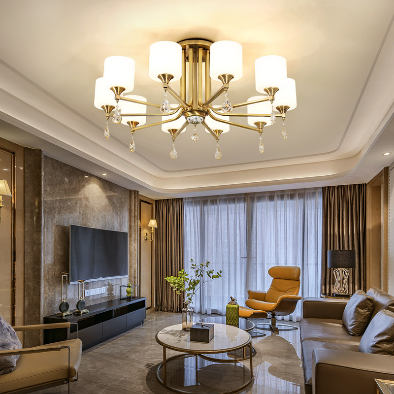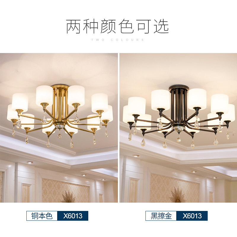 Living room lamp contracted modern atmosphere home use European type crystal lamp master bedroom lamp American type lamp all copper absorption ceiling lamp