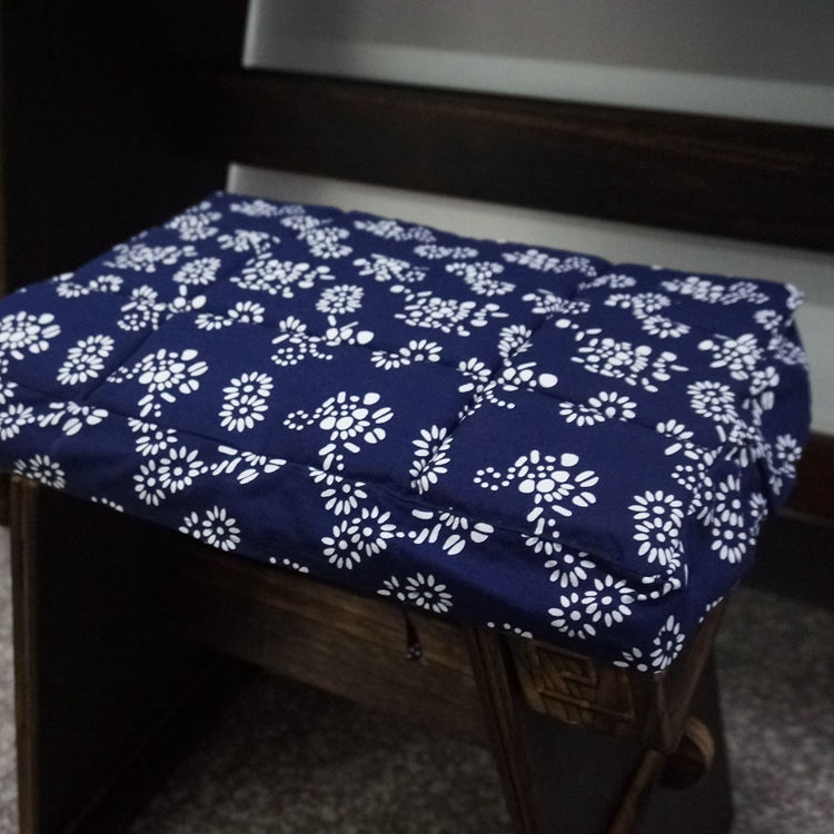 Guqin stool cushion word spectrum square cushion blue printing round meditation cushion linen double-sided with removable and washable long piano stool cushion