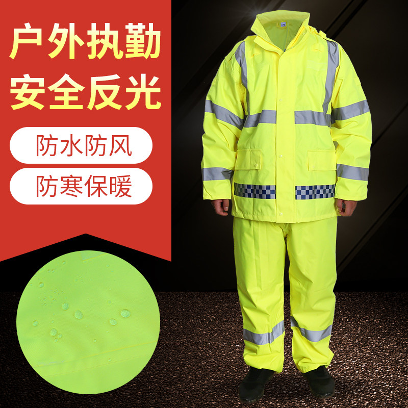 Traffic Clerk Reflective Duty Raincoat Security Patrol Split Adult Raincoat Rain Pants Suit Moto Electric Car Raincoat-Taobao
