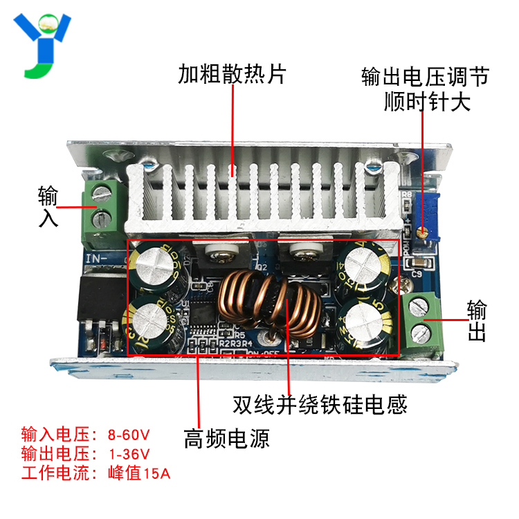 DC-DC Buck Module 200W15A High Power DC Adjustable 8-55V to 1-36V High Efficiency Synchronous Rectification