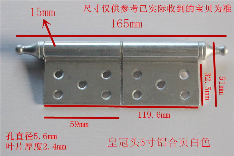 Crown head aluminum hinge 5 inches 2 0 thick natural color crown head aluminum 5 inch natural color 1 screw 10 crown head aluminum 5 inch natural color 1 rivet 10 crown head aluminum hinge 5 inch 2 4 thick