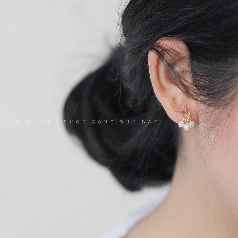 Korean version ins niche style mini pearl earrings 925 silver plated 14k gold exquisite handmade small simple ear needles