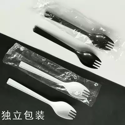 Fork and spoon one one-time extension 16cm thick double-handle tableware independent packaging salad plastic spoon