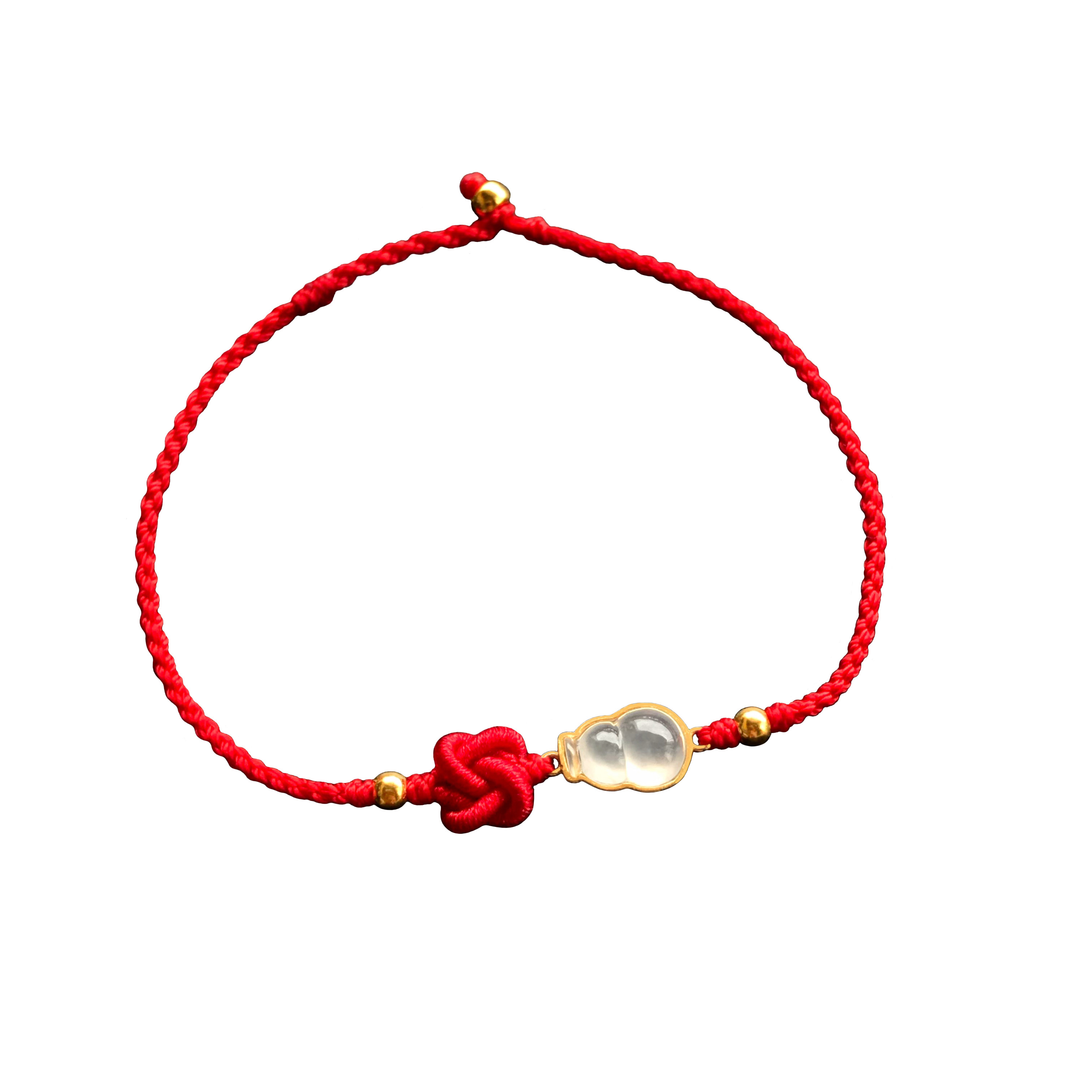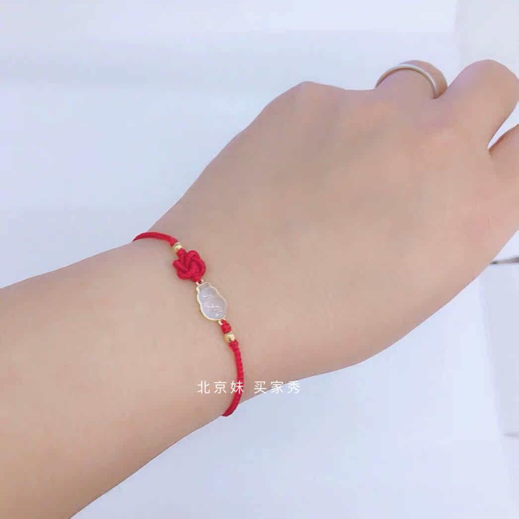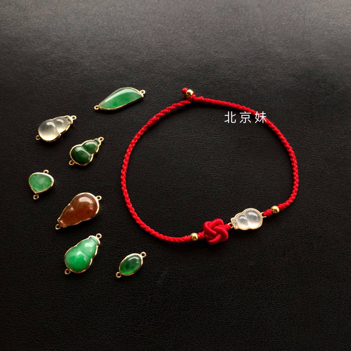 18K gold inlaid with natural emerald A cargo ice seed Yang green ring gourd succor red rope Handmade to weave this life