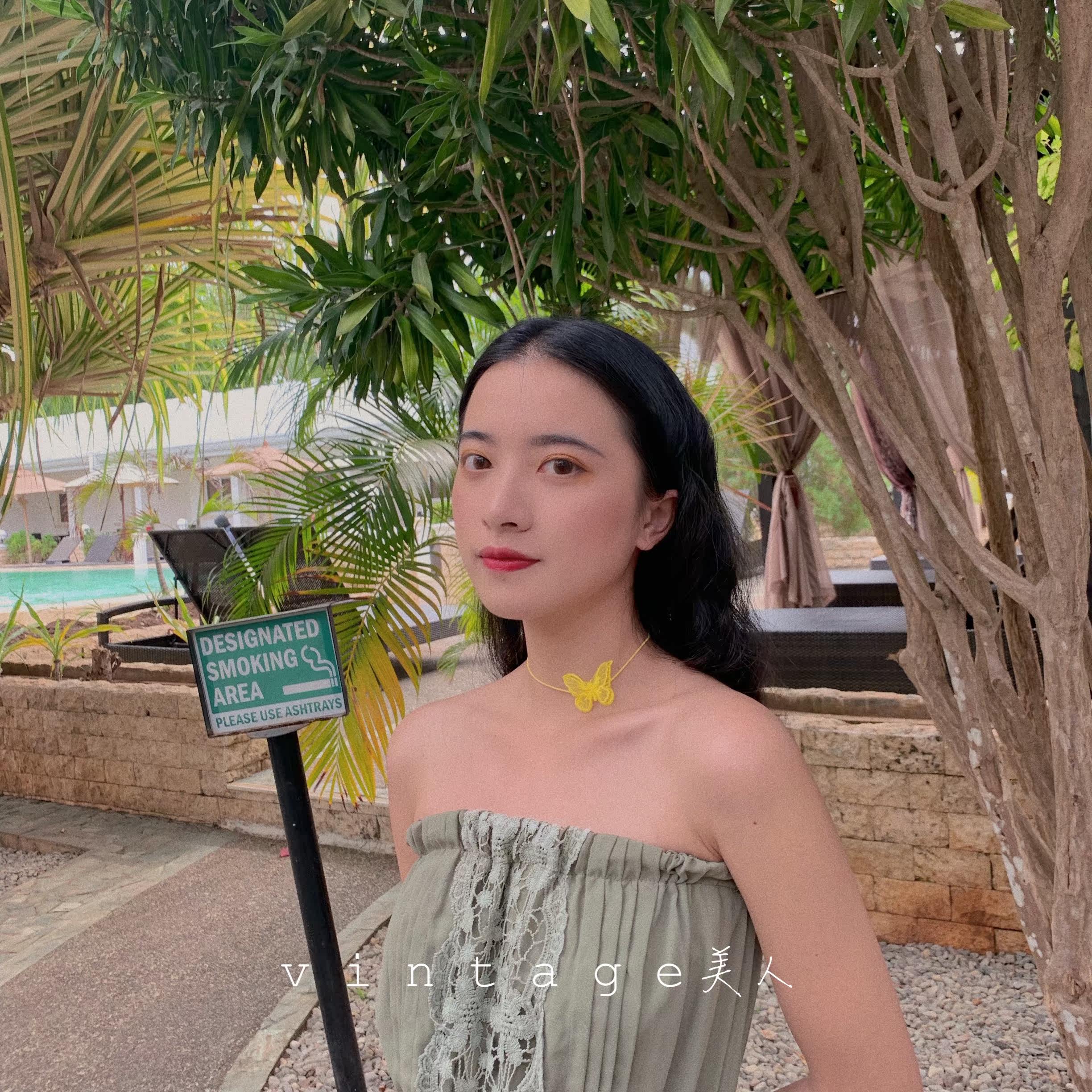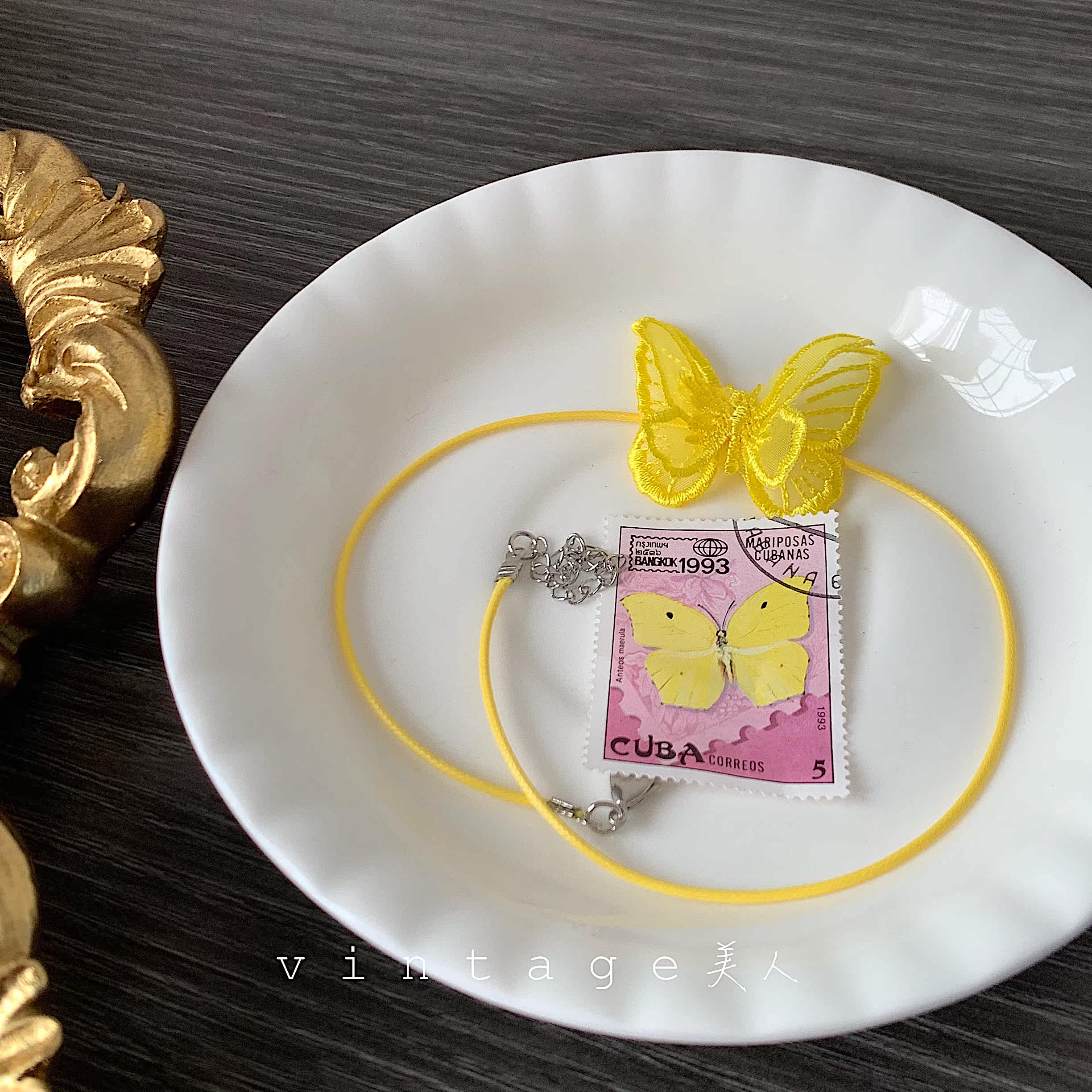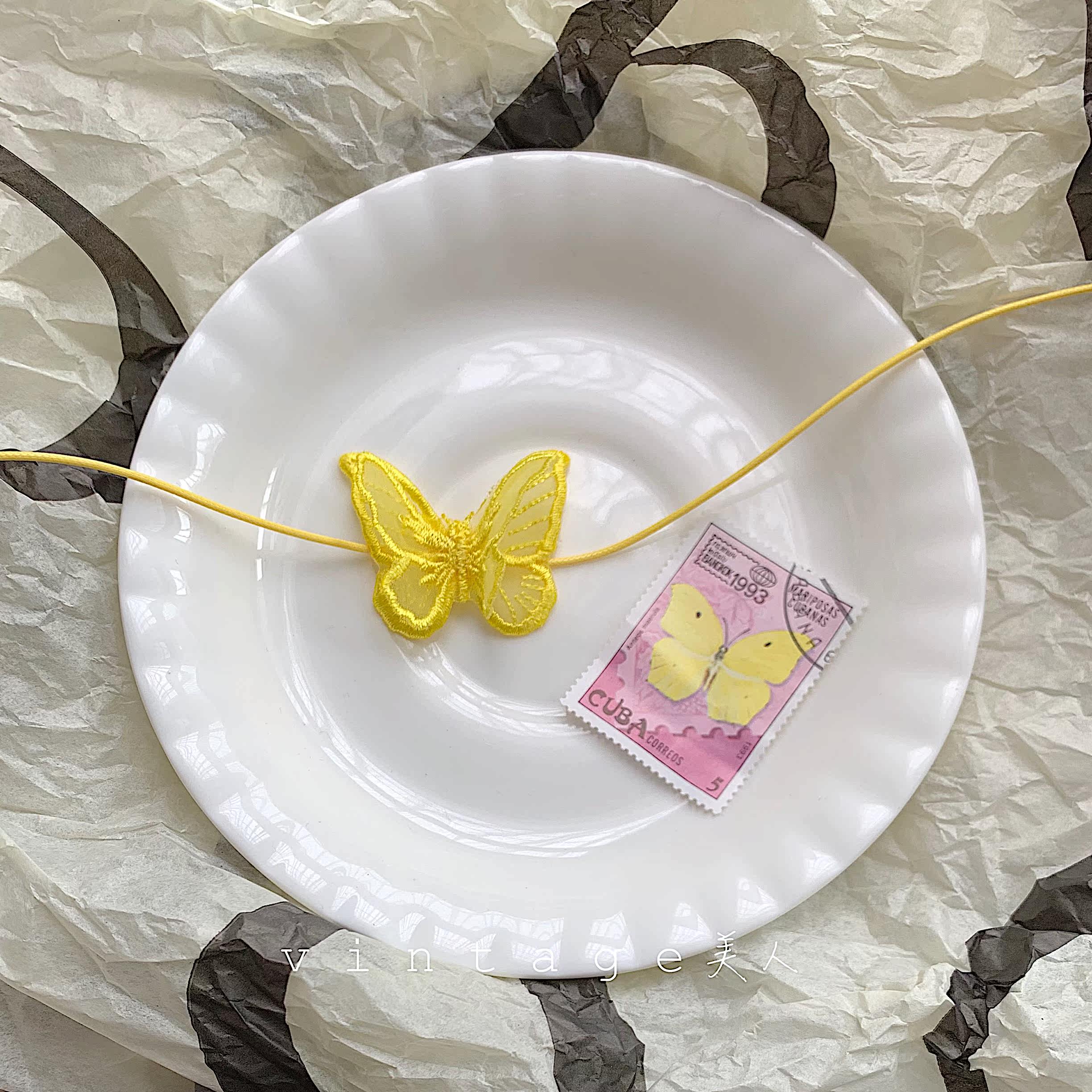 "Butterfly Change" series retro elegant court all-match lace double yellow butterfly clavicle chain chocker