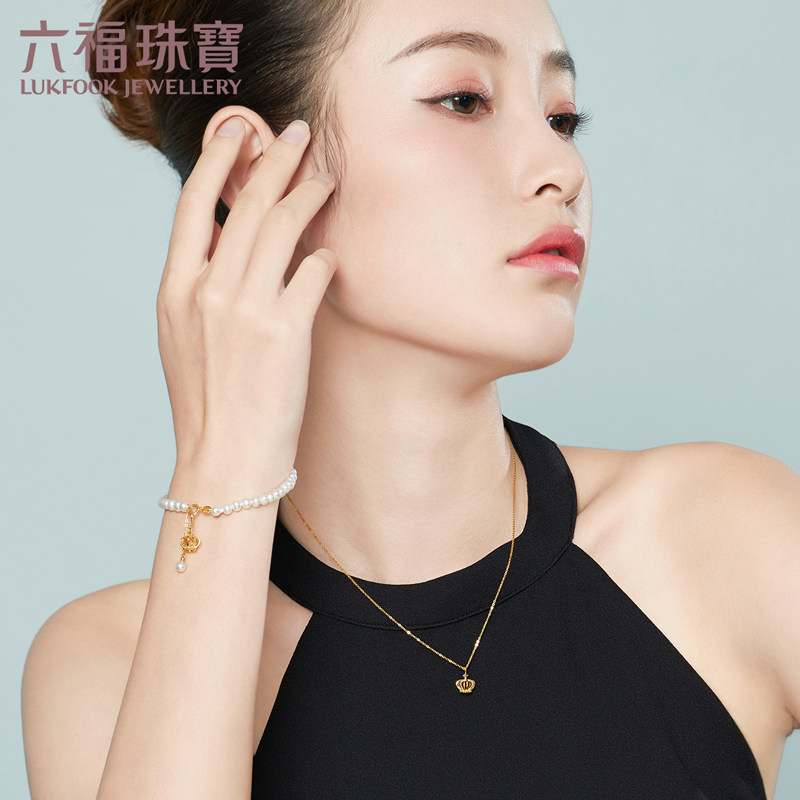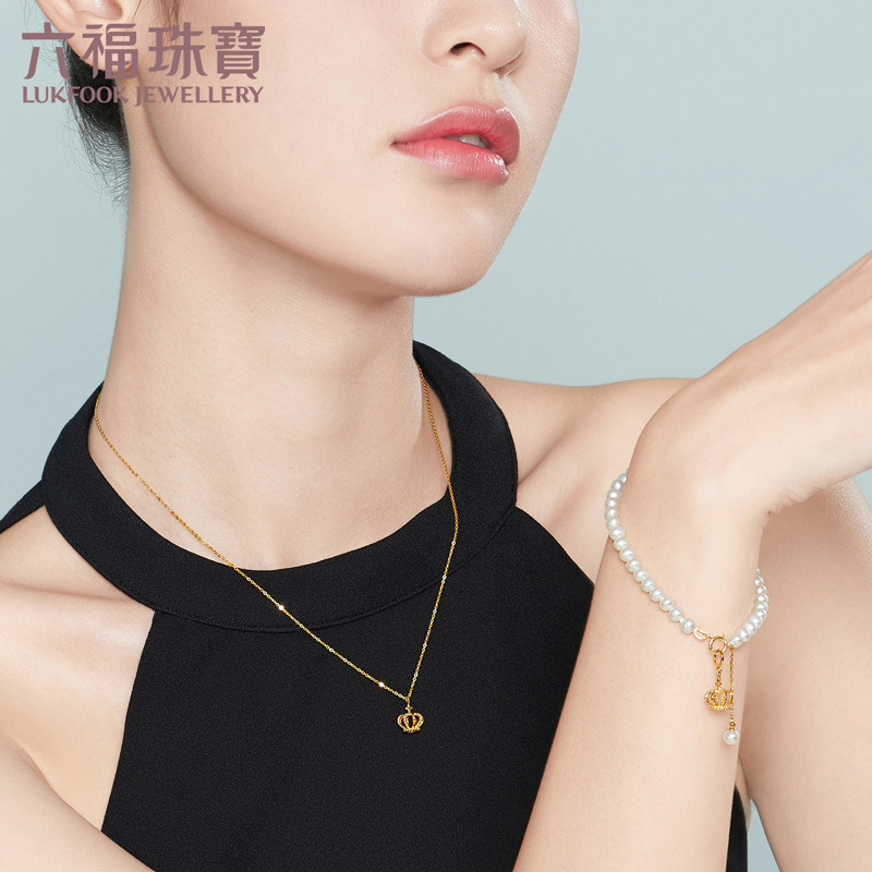 Liufu jewelry 18k gold necklace Vintage crown color gold pendant set chain L18TBKN0045R